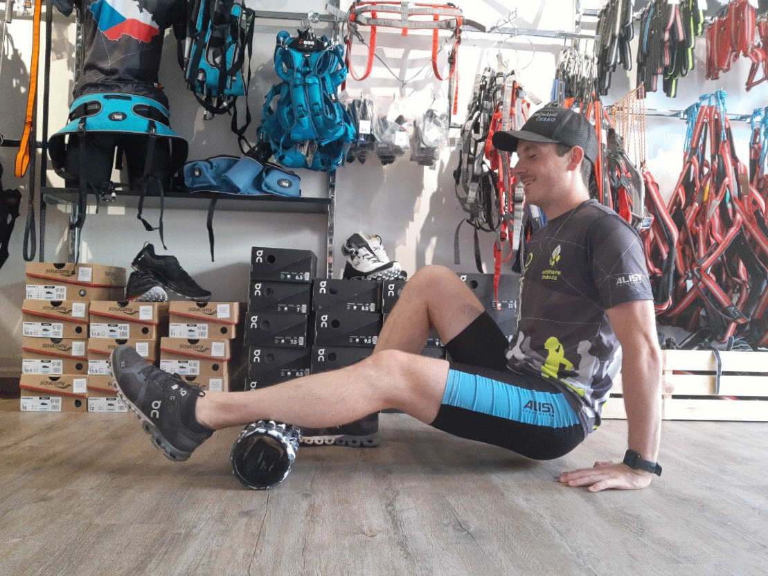 Válcuj se masážním válcem i před během. Jen pozor, nikdy neválej klouby, kosti ani šlachy! Válec patří na svaly! Válcování před během slouží k prevenci, aktivuješ fascie, které dostanou signál, že se bude něco dít. Jak na to? Válej se po válci bez tlaku směrem nahoru a dolů – zaktivuješ velké svalové partie. A také nezapomeň na běžeckou abecedu!
