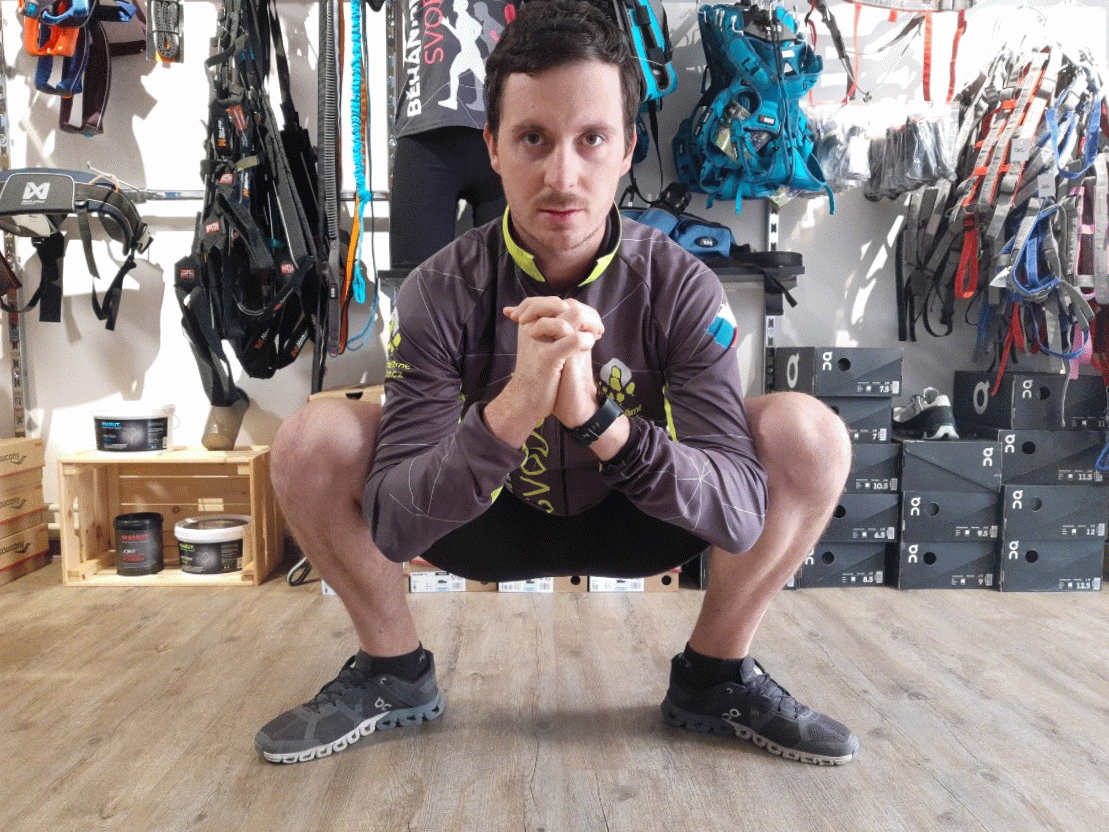 Mrkni na video. Pak si zeširoka sedni na bobek (do hlubokého dřepu) opři loky o vnitřní stranu kolen a jen zhluboka dýchej. Pohlídej si, abys měl paty na zemi a špičky ti směřují ven. Celé si to můžeš ztížit tak, že se nahneš více dopředu. V této pozici sběrače pak hned ucítíš uvolnění. Klidně se i můžeš pohupovat.